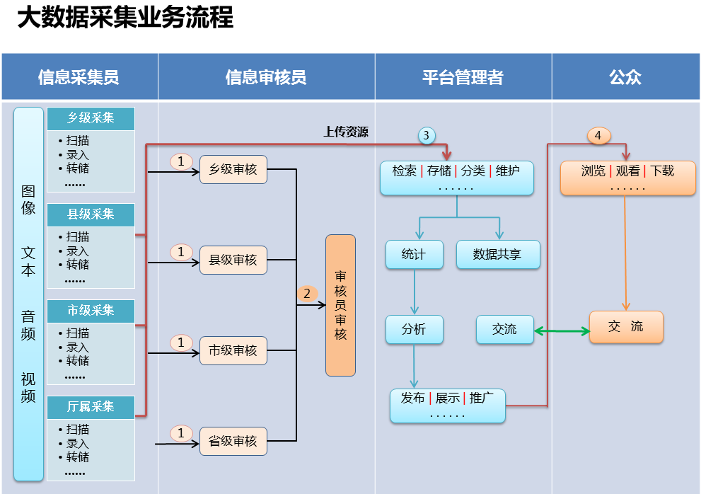 1)数据来源多种多样,包括不同单位、不同层级、不同角色用户的数据上传;